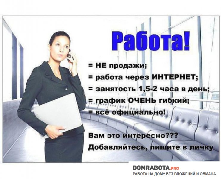 Требуются активные, нацеленные на результат, коммуникабельные, позитивные партнеры, для работы на дому, в свободное время, готовые работать и продвигаться по служебной лестнице. Требования: